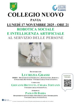 Dalla medicina alla cronaca, alla storia politica, dalla letteratura alla robotica sociale: il Collegio Nuovo avvia per i primi mesi dell’anno accademico 2025-26 gli appuntamenti culturali aperti anche al pubblico esterno.