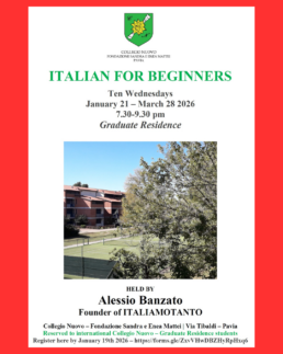 20 ore di lezione riservate ai studenti internazionali della Sezione laureati del Collegio Nuovo, con un docente di ampia esperienza in Istituti italiani di cultura all’estero come Alessio Banzato.